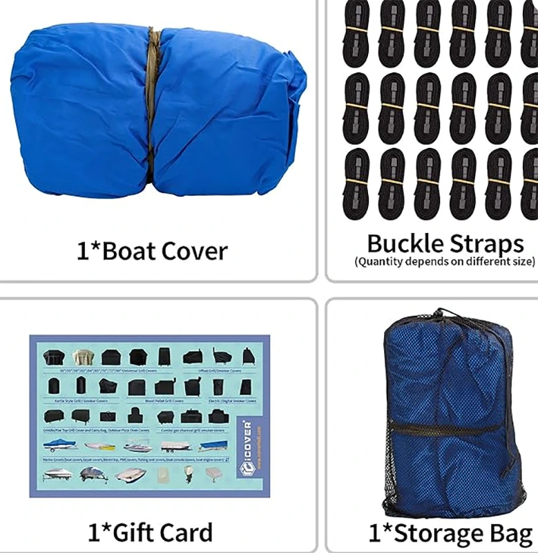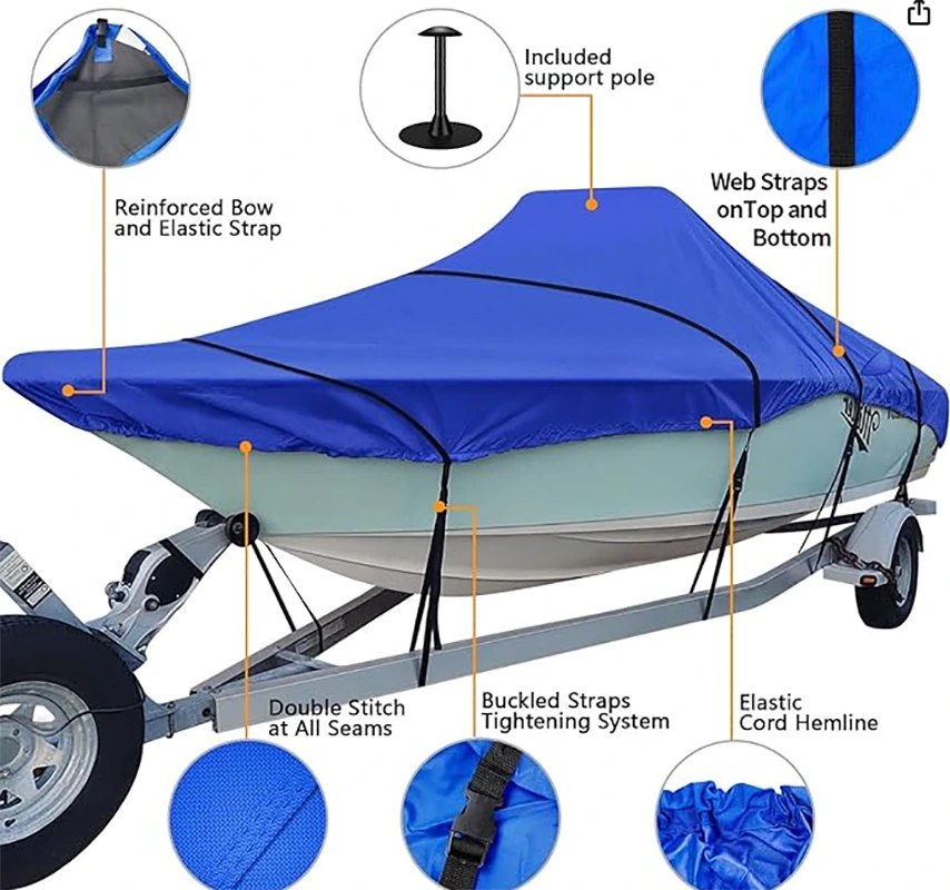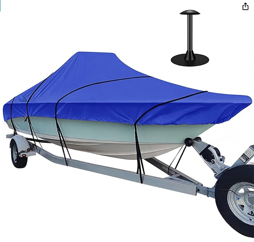 Sijas platuma ūdensnecaurlaidīgs laivas pārsegs jahtas pārsegs, piekabināms laivas pārsegs, 600D lieljaudas laivas pārsegs, kas piemērots V veida korpusa viduskonsoles laivai, kuras garums ir 20 pēdas–22 pēdas, un sijas platums līdz 116 in, vējstikla augstums līdz 30 colm, iekļauts laivas pārsega atbalsta stabs.