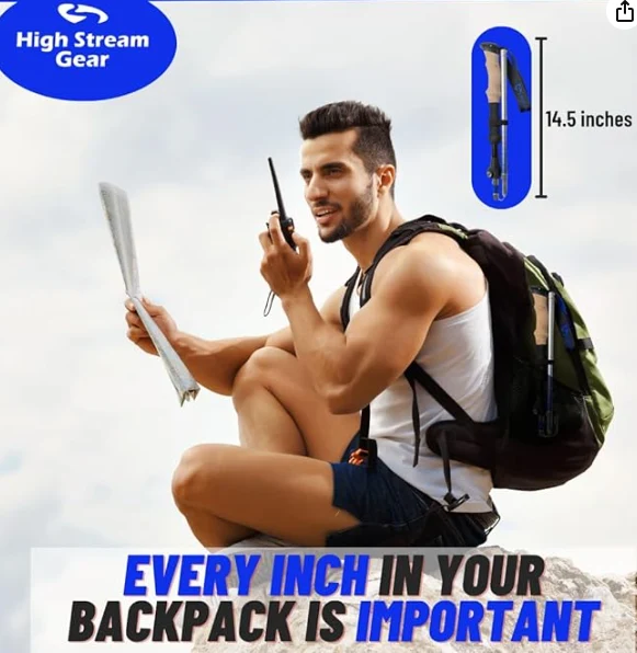 Pārgājiena stabi hikieriem sabrūk līdz 37 cm (14,5 collas) un nosver tikai 10 unces, kas atstāj jūs par jūsu nepieciešamību un personīgo aprīkojumu.