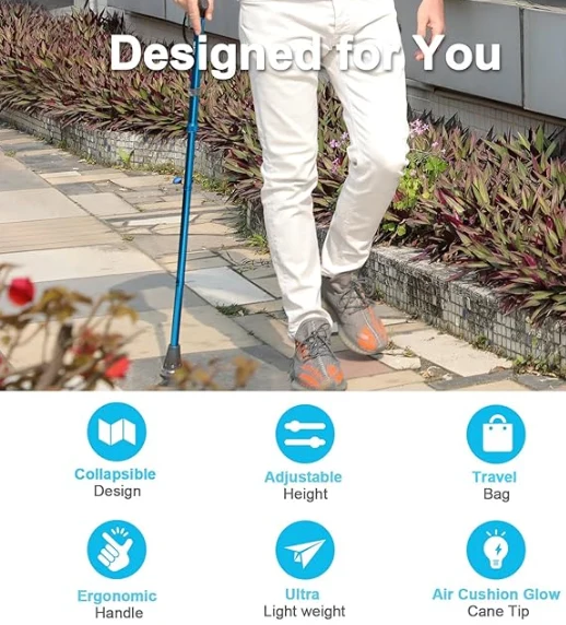 Saliekams teleskopiskā staigāšanas niedru cukurniedres, gals iedegas naktī, kas ievērojami nodrošina nakts staigāšanas drošību (ar ekspozīciju tikai noteiktā laikā, mirdzuma konuss rodas redzamībā tumsā.