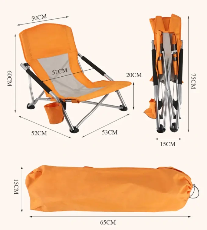 Saliekams pludmales komplekts, zemi pludmales krēsli pieaugušajiem, saliekami pārnēsājami smilšu krēsls ar kausa turētāju un nēsāšanu. Uz metāla rokām ir roku spilveni, lai jūs varētu ērti atpūsties.
