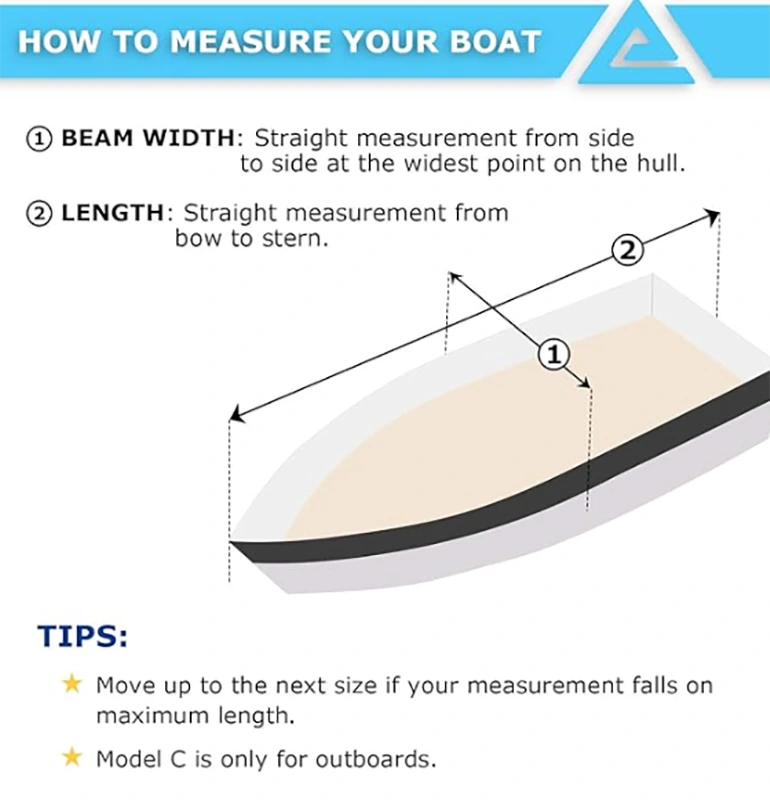 Izmērs Modelis C: 16'-18,5'L Sijas platums līdz 94 collām