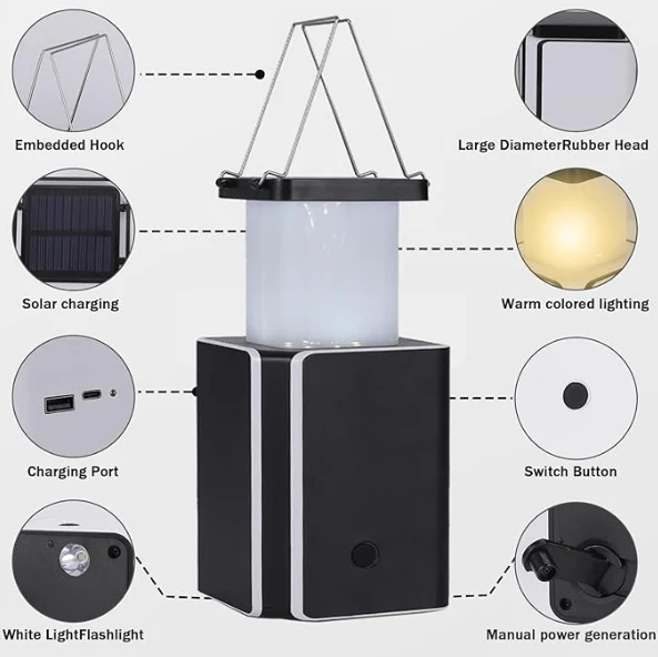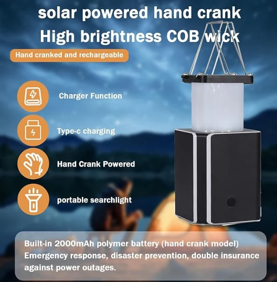 IPX4, avārijas apgaismojums ar rokām ar rokām enerģijas ražošana, mobilā enerģijas funkcija mobilā tālruņa barošanas avotam, avārijas gaismas, lukturīši, SOS brīdinājuma gaismas., Saules LED uzlādējamais avārijas kempinga laterna, saules uzlādējams, uzlādējams C tipa, C tipa,