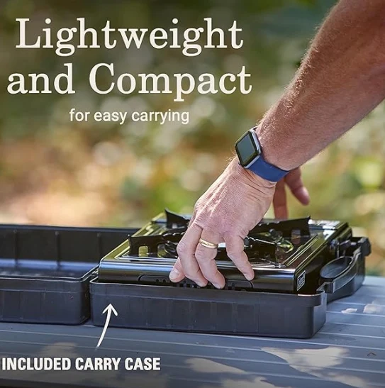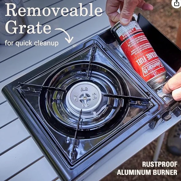 Mini portatīvā āra kempinga cepeškrāsns.Porelē ar pārklātu režģi ir noņemama ātrai tīrīšanai; Rūsas necaurlaidīgs alumīnija deglis.zhejiang Jiayu Outdoor Products Co., SIA Instastart aizdedze automātiskam, nepārspējīgam apgaismojumam; 7650 kopējais ēdiena gatavošanas jaudas btus