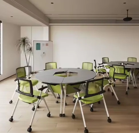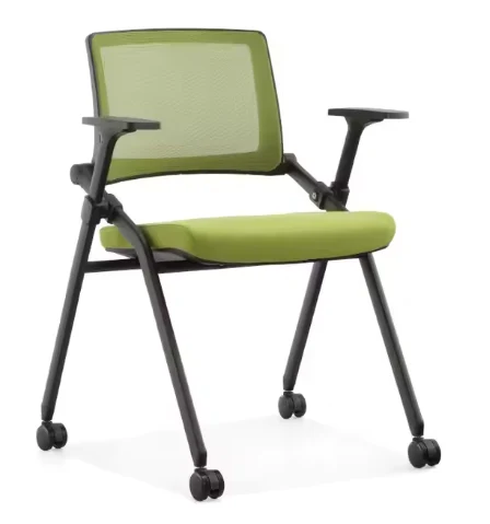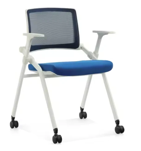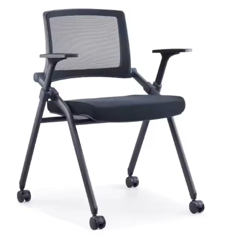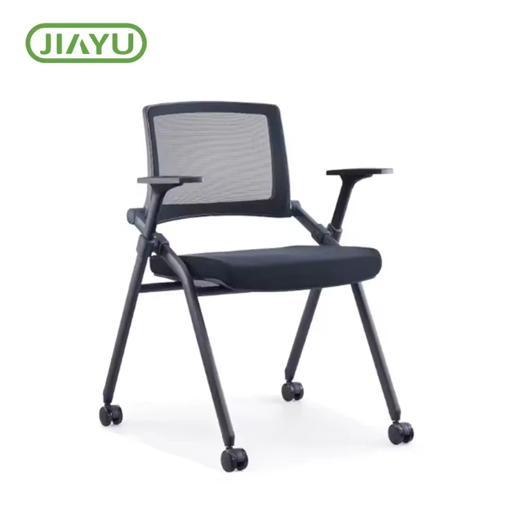 Polsterēts metāla saliekamais krēsls, saliekams biroja krēsls ar PU riteņiem un bīdāmo roku balstu-Eergonomiskā acs atlecošs, sakraujams konferenču zāles krēsls, biroja viesis un uzņemšanas un sanāksmju krēsls