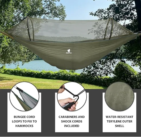 Šī šūpuļtīkla sega var pārvērsties par kompaktu izmēru mugursomai, kas ir lieliski piemērota kempingam, pārgājieniem, ceļošanai